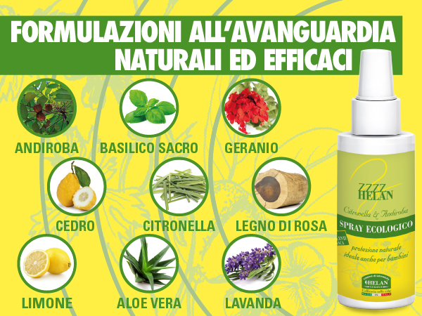 Le sostanze odorose emesse dalle piante attirano normalmente gli insetti che, volando da un fiore all'altro, ne garantiscono l'impollinazione e la riproduzione. Talune piante, al contrario, forniscono oli essenziali sgraditi a certi tipi di insetti "molesti" che, quindi, se ne tengono lontani. Un'accurata selezione di piante aromatiche ha permesso a HELAN di realizzare un'originale linea di prodotti in grado di evitare le aggressioni più fastidiose, che si manifestano con maggiore insistenza nei mesi estivi. Gli oli di Andiroba e Neem e l'olio essenziale di Citronella sono alla base di queste formulazioni in virtù delle loro particolari caratteristiche.