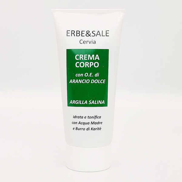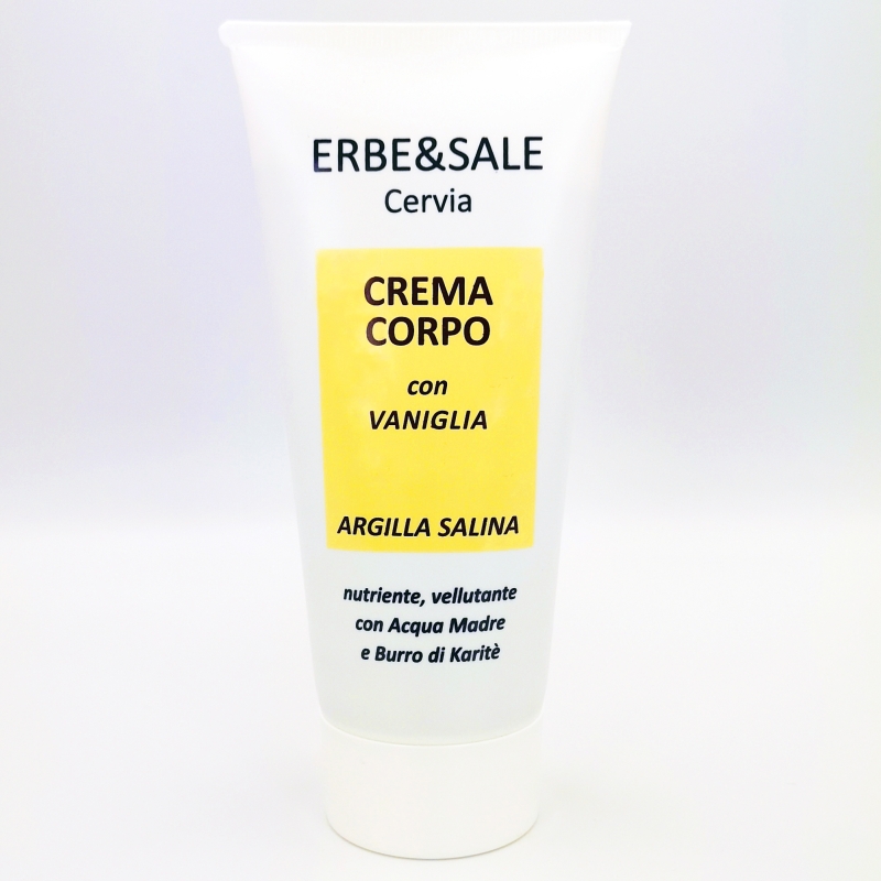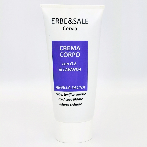 CREMA CORPO ad azione idratante e nutriente, in cui l' Argilla e l'Acqua Madre Salina proteggono dagli agenti esterni, mentre il Burro di Karitè idrata, nutre e ripristina il corretto velo lipidico di protezione della pelle.